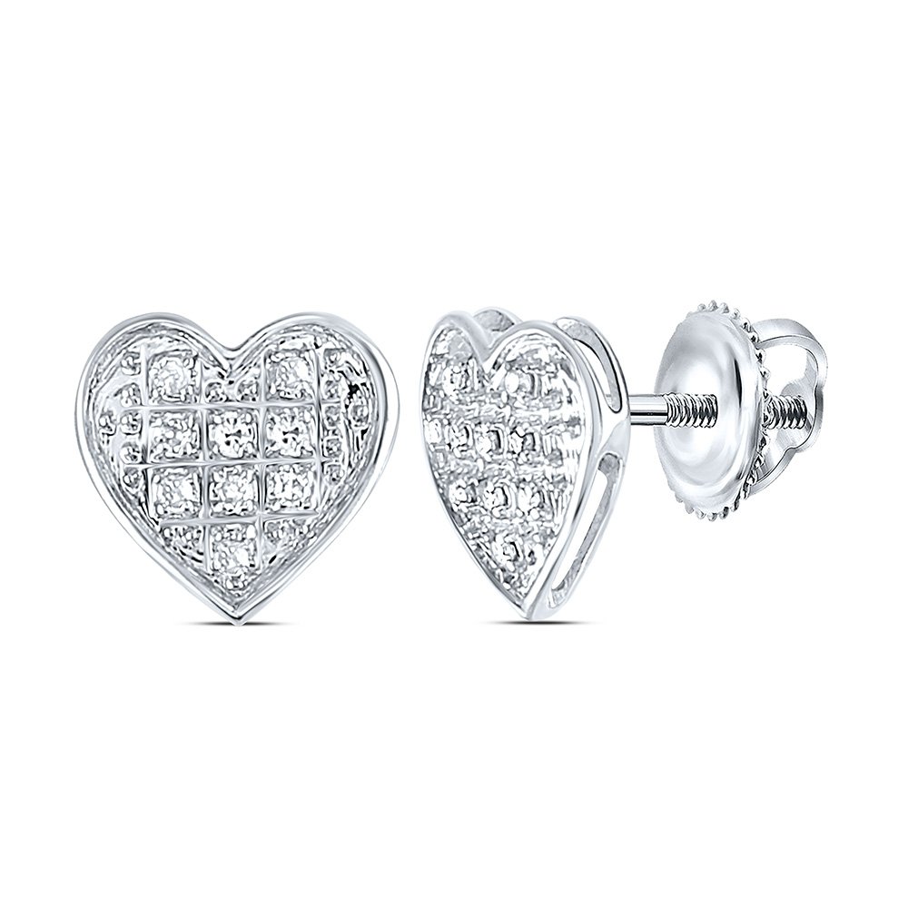 10kt White Gold Womens Round Diamond Heart Earrings 1/20 Cttw