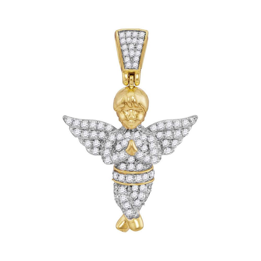 10kt Yellow Gold Mens Round Diamond Guardian Angel Charm Pendant 1/2 Cttw