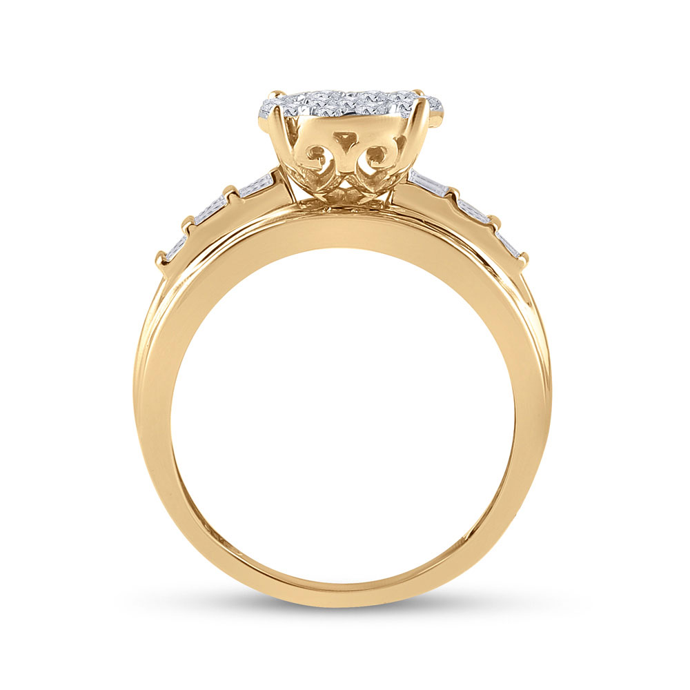 10kt Yellow Gold Round Diamond Cluster Bridal Wedding Engagement Ring 1 Cttw