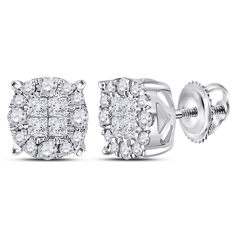 14kt White Gold Womens Princess Diamond Cluster Earrings 1/2 Cttw