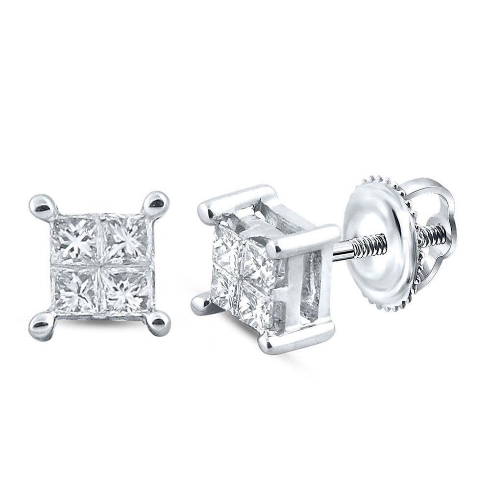 14kt White Gold Womens Princess Diamond Square Earrings 1/4 Cttw