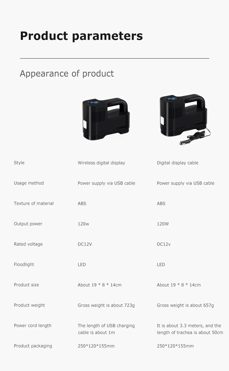 Working Voltage: Wired type DC12V, wireless type 100V-240V AC aluminum battery charger (need to be equipped), USB boost cable parameters 5V-13V