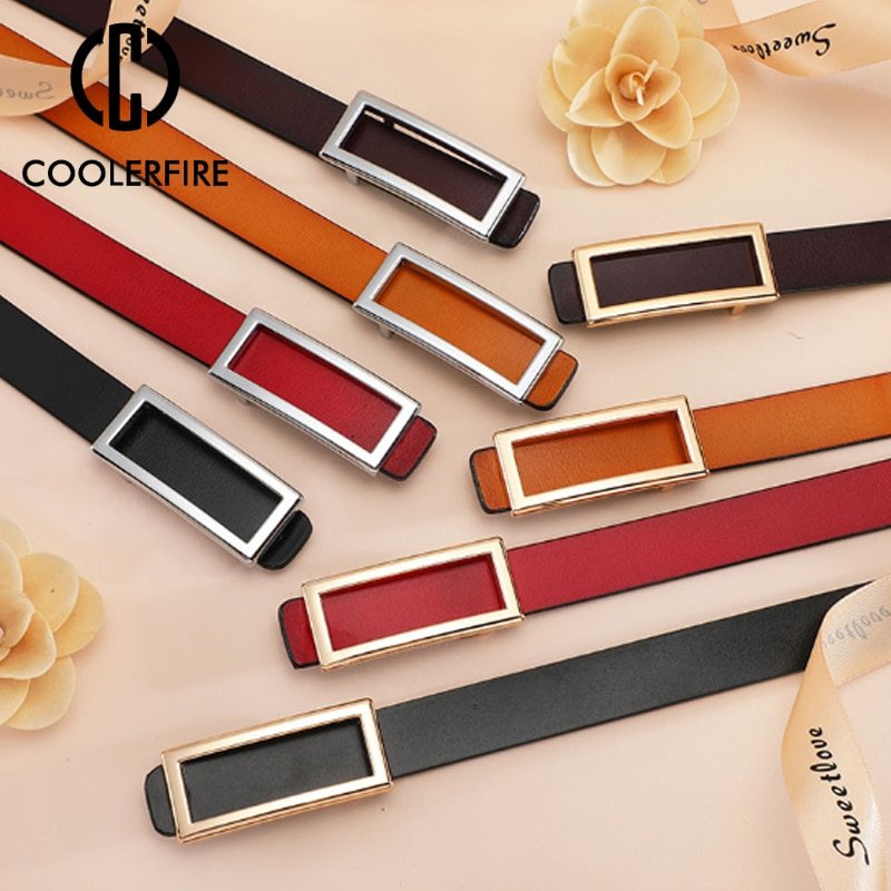 COOLERFIRE New Designer Gold Buckle Belt Waist Female  Skinny Thin Genuine Leather Belts For Women Dress Belt LB016