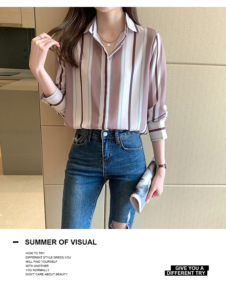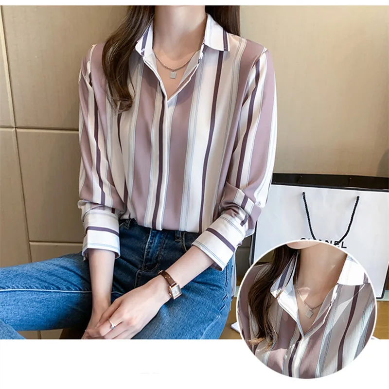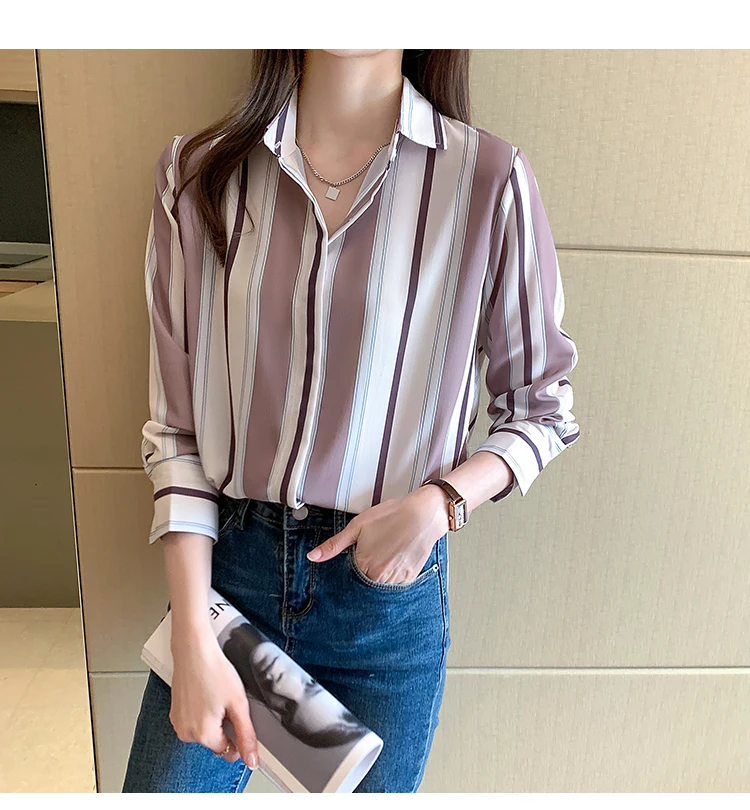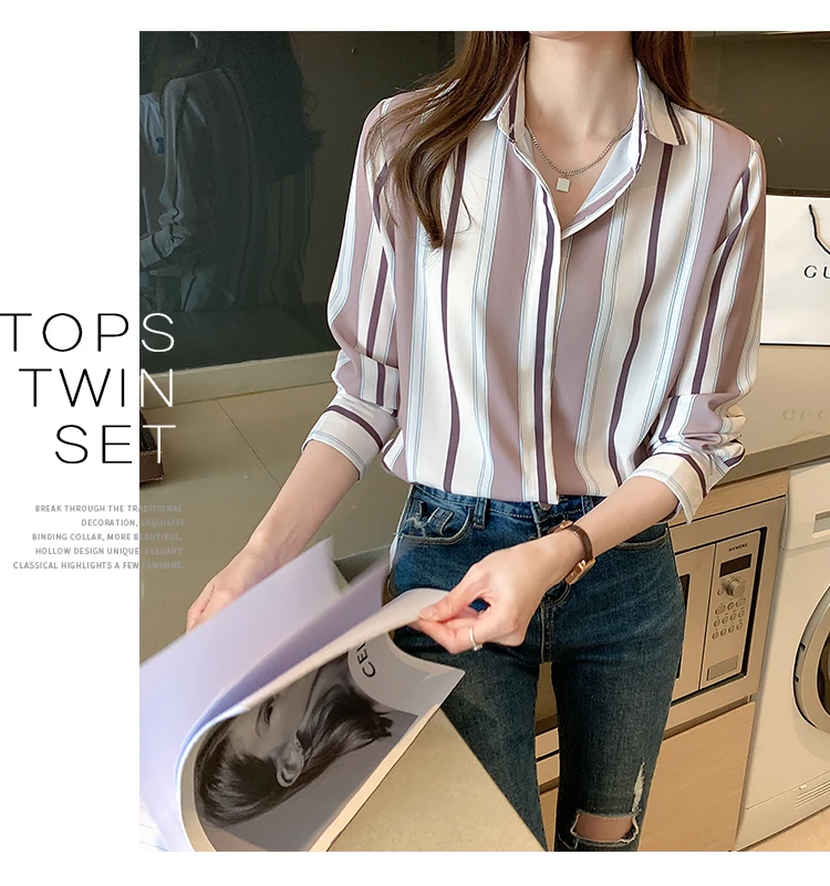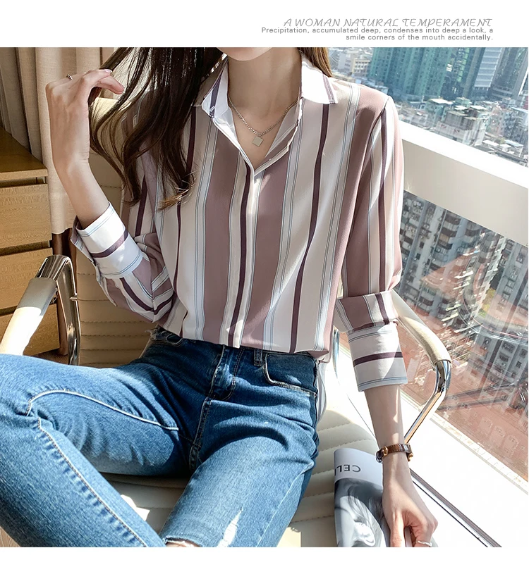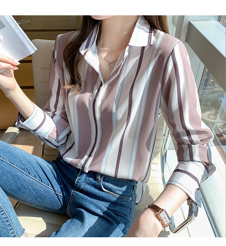 Fashion Women Shirts Striped B...