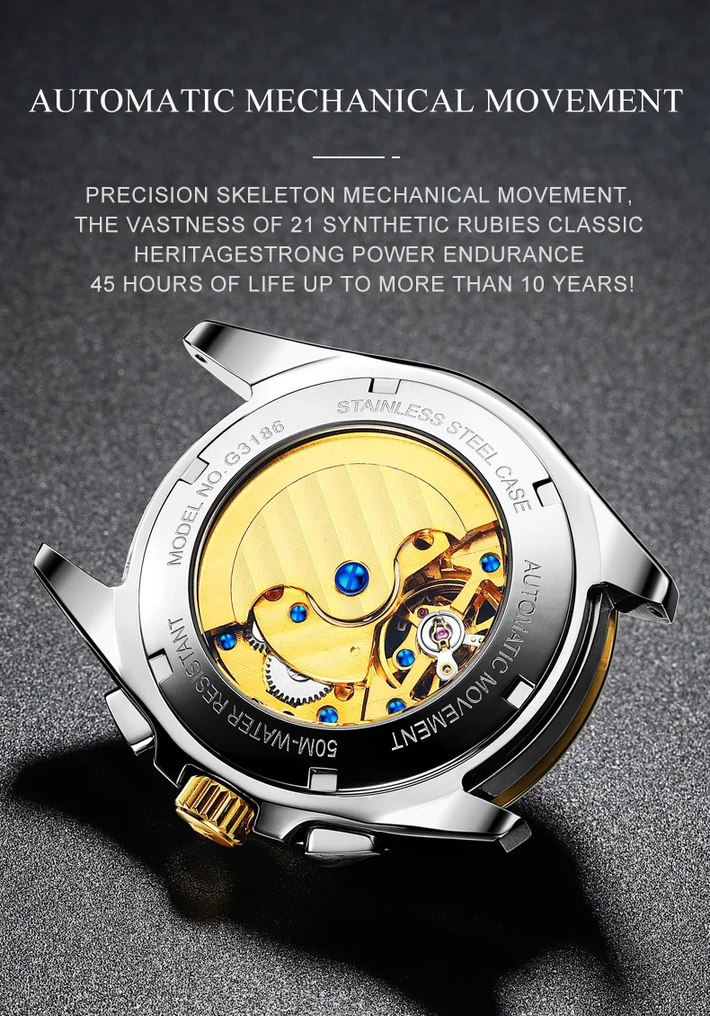 5. The watch has waterproof, luminous and other functions, mechanical watch core, fine steel watch band, high quality