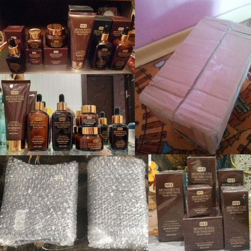 Skin Care Set Small Brown Bottle Face Toner Essence Eye Cream Lotion Anti-Aging