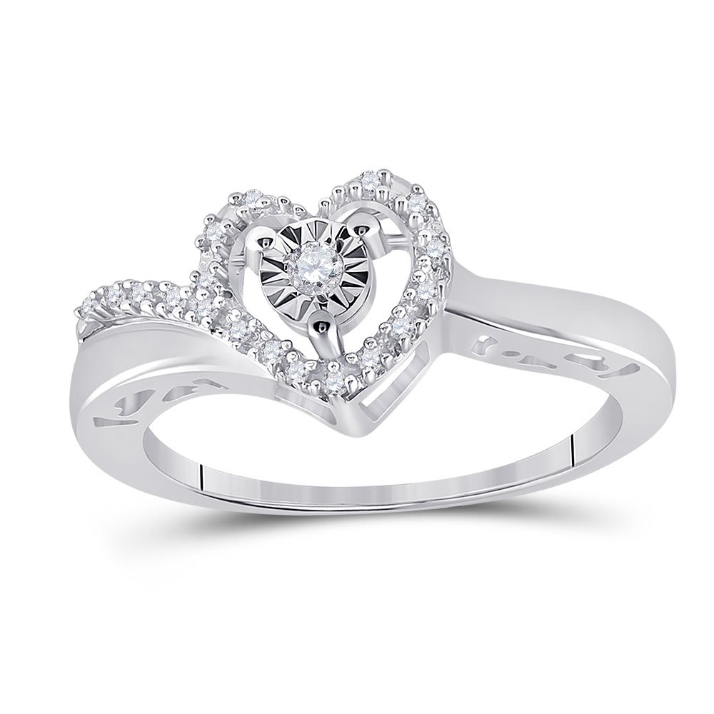 Sterling Silver Womens Round Diamond Heart Ring 1/10 Cttw