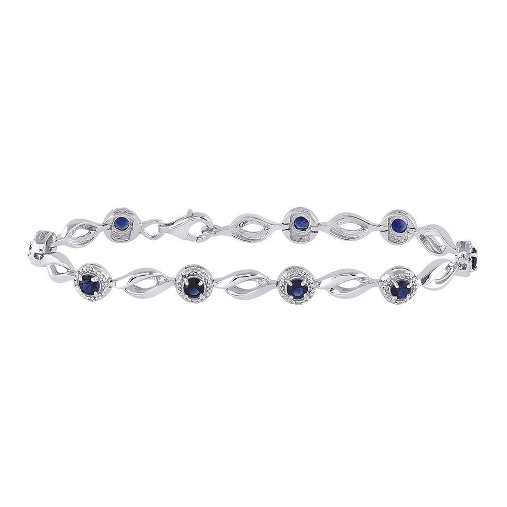 Sterling Silver Womens Round Lab-Created Blue Sapphire Tennis Bracelet 3 Cttw