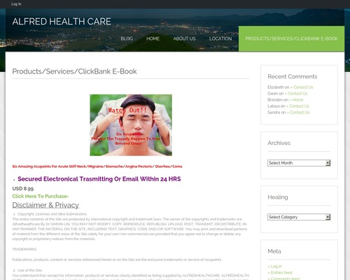 Product Name: Products/Services/ClickBank E-Book | Alfred Health Care