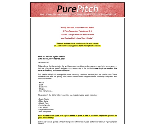 So if you believe that you did not benefit from the techniques employed in the Pure Pitch course, then all you have to do is email me for a full refund! I will promptly return your money no questions asked!